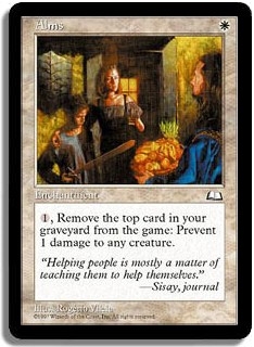 <1,Remove the top card in your graveyard from the game>: Prevent 1 damage to any creature.
