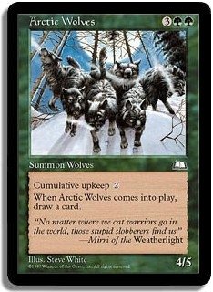 Cumulative upkeep: <2>. When Arctic Wolves comes into play, draw a card.