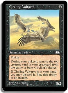 Flying. During your upkeep, remove the top creature card in your graveyard from the game or bury Circling Vultures. If Circling Vultures is in your hand, you may discard it. Play this ability as an instant.