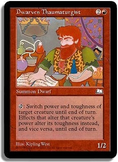 <T>: Switch power and toughness of target creature until end of turn. Effects that alter that creature's power alter its toughness instead, and vice versa, until end of turn.