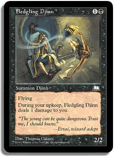 Flying. During your upkeep, Fledgling Djinn deals 1 damage to you.