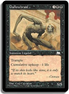 Trample, Cumulative upkeep: <1 life>.