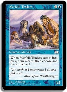 When Merfolk Traders comes into play, draw a card, then choose and discard a card.