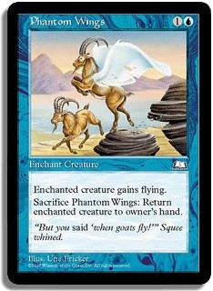 Enchanted creature gains flying. <Sacrifice Phantom Wings>: Return enchanted creature to owner's hand.