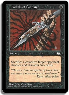 <Sacrifice a creature>: Target opponent chooses and discards two cards.