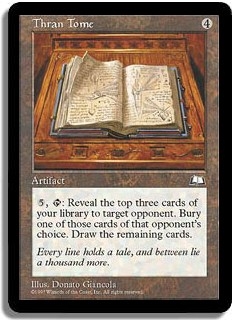<5,T>: Reveal the top three cards of your library to target opponent. Bury one of those cards of that opponent's choice. Draw the remaining cards.