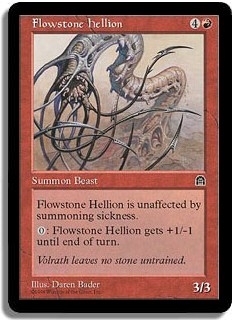 Flowstone Hellion is unaffected by summoning sickness. <0>: Flowstone Hellion gets +1/-1 until end of turn.