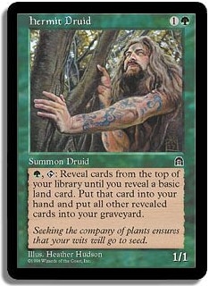<G,T>: Reveal cards from the top of your library until you reveal a basic land card. Put that card into your hand and put all other revealed cards into your graveyard.