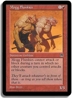 Mogg Flunkies cannot attack or block during a turn in which no other creature you control attacks or blocks.