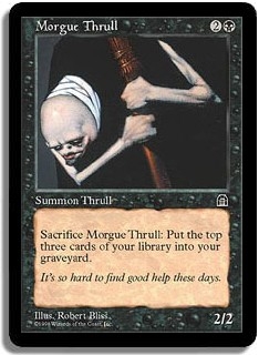 <Sacrifice Morgue Thrull>: Put the top three cards of your library into your graveyard.