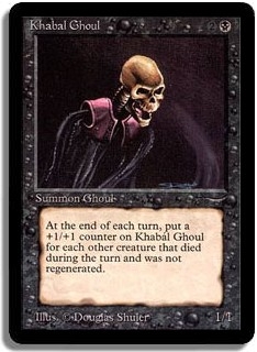 At the end of each turn, put a +1/+1 counter on Khabal Ghoul for each other creature that died during the turn and was not regenerated.