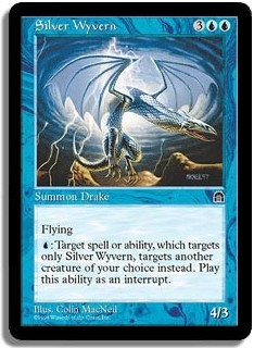 Flying. <U>: Target spell or ability, which targets only Silver Wyvern, targets another creature of your choice instead. Play this ability as an interrupt.