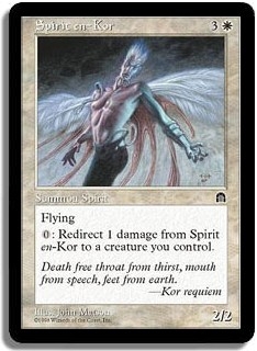 Flying. <0>: Redirect 1 damage from Spirit en-Kor to a creature you control.
