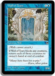 If Wall of Tears blocks any creatures, return each of those creatures to owner's hand at end of combat.