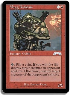 <T>: Flip a Coin. If you win the flip, destroy target creature an opponent controls. Otherwise, destroy target creature of that opponent's choice.