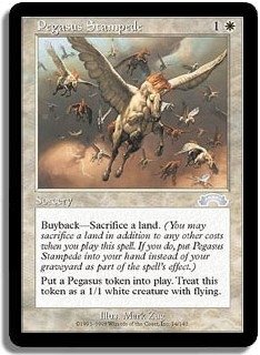 Buyback - Sacrifice a land. Put a Pegasus token into play. Treat this token as a 1/1 white creature with flying.