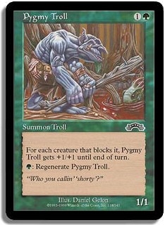 For each creature that blocks it, Pygmy Troll gets +1/+1 until end of turn. <G>: Regenerate Pygmy Troll.