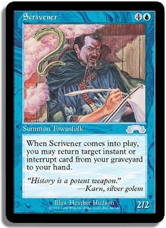 When Scrivener comes into play, you may return target instant or interrupt card from your graveyard to your hand.