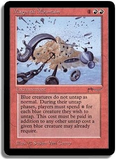 Blue creatures do not untap during their controllers' untap phase. During his or her upkeep, a player may pay an additional <4> to untap a blue creature he or she controls.