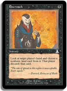 Look at target player's hand and choose a nonbasic land card from it. That player discards that card.