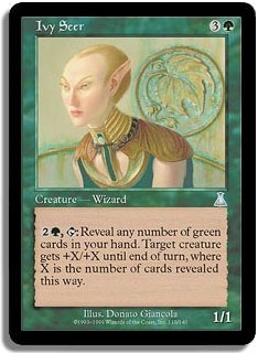 <2G, T>: Reveal any number of green cards in your hand. Target creature gets +X/+X until end of turn, where X is the number of cards revealed this way.