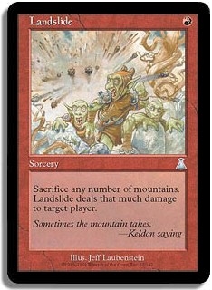 Sacrifice any number of mountains. Landslide deals that much damage to target player.
