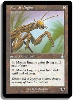 <2>: Mantis Engine gains flying until end of turn. <2>: Mantis Engine gains first strike until end of turn.