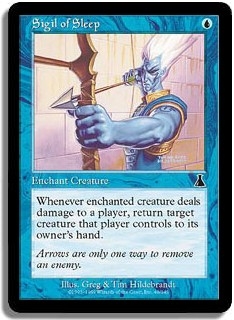 Whenever enchanted creature deals damage to a player, return target creature that player controls to its owner's hand.