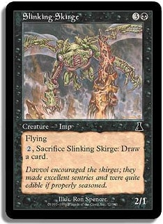 Flying. <2, Sacrifice Slinking Skirge>: Draw a card.