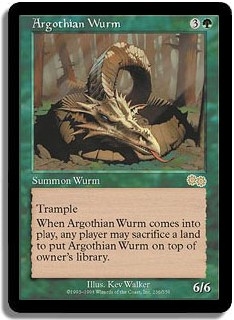 Trample. When Argothian Wurm comes into play, any player may sacrifice a land to put Argothian Wurm on top of owner's library.