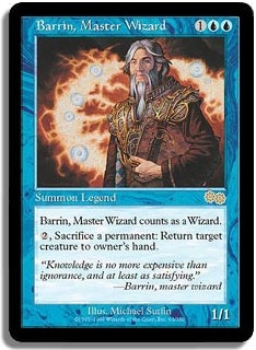 Barrin, Master Wizard counts as a Wizard. <2, Sacrifice a permanent>: Return target creature to owner's hand.