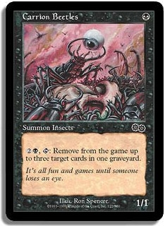 <2B,T>: Remove from the game up to three target cards in one graveyard.