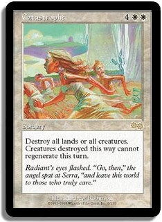 Destroy all lands or all creatures. Creatures destroyed this way cannot regenerate this turn.