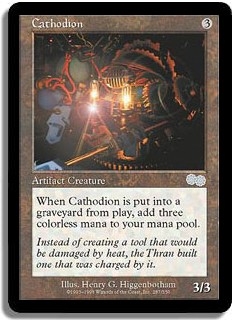 When Cathodion is put into a graveyard from play, add three colorless mana to your mana pool.