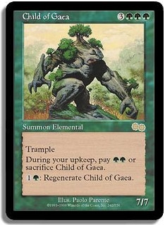 Trample. During your upkeep, pay <GG> or sacrifice Child of Gaea. <1G>: Regenerate Child of Gaea.