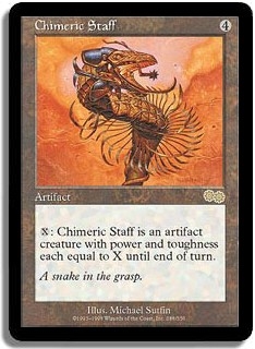 <X>: Chimeric Staff becomes an artifact creature with power and toughness equals to X until end of turn.