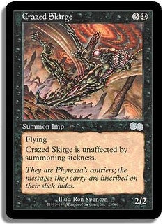 Flying. Crazed Skirge is unaffected by summoning sickness.