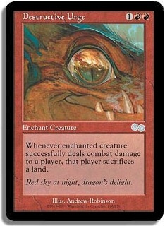 Whenever enchanted creature successfully deals combat damage to a player, that player sacrifices a land.