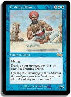 Flying. During your upkeep, pay <1U> or sacrifice Drifting Djinn. Cycling <2>.