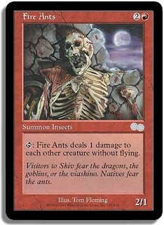 <T>: Fire Ants deals 1 damage to each other creature without flying.
