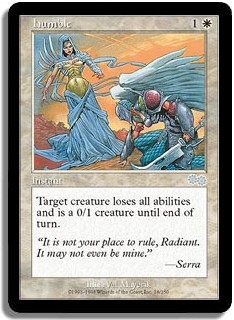 Target creature loses all abilities and is a 0/1 creature until end of turn.