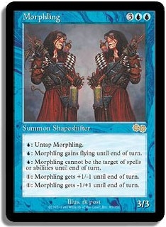<U>: Untap Morphling. <U>: Morphling gains flying until end of turn. <U>: Morphling cannot be the target of spells or abilities until end of turn. <1>: Morphling gets +1/-1 until end of turn. <1>: Morphling gets -1/+1 until end of turn.
