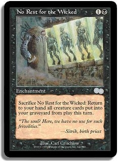 Sacrifice No Rest for the Wicked: Return to your hand all creature cards put into your graveyard from play this turn.