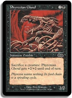 <Sacrifice a creature>: Phyrexian Ghoul gets +2/+2 until end of turn.