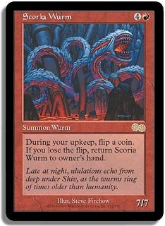 During your upkeep, flip a coin. If you lose the flip, return Scoria Wurm to owner's hand.