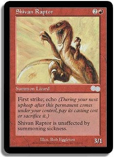 First strike, Echo. Shivan Raptor is unaffected by summoning sickness.