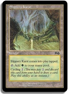 Slippery Karst comes into play tapped. <T>: Add <G> to your mana pool. Cycling <2>.