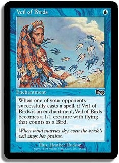 When one of your opponents succesfully casts a spell, if Veil of Birds is an enchantment, Veil of Birds becomes a 1/1 creature with flying that counts as a Bird.
