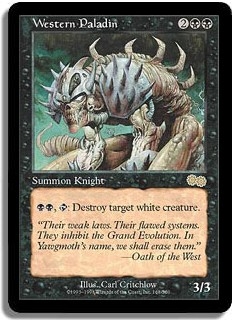 "Their weak laws. Their flawed systems. They inhibit the Grand Evolution. In Yawgmoth's name, we shall erase them." -Oath of the West