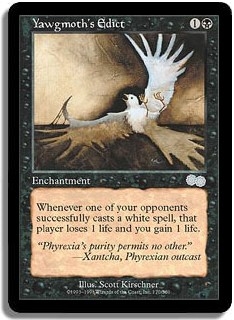 Whenever one of your opponents successfully casts a white spell, that player loses 1 life and you gain 1 life.